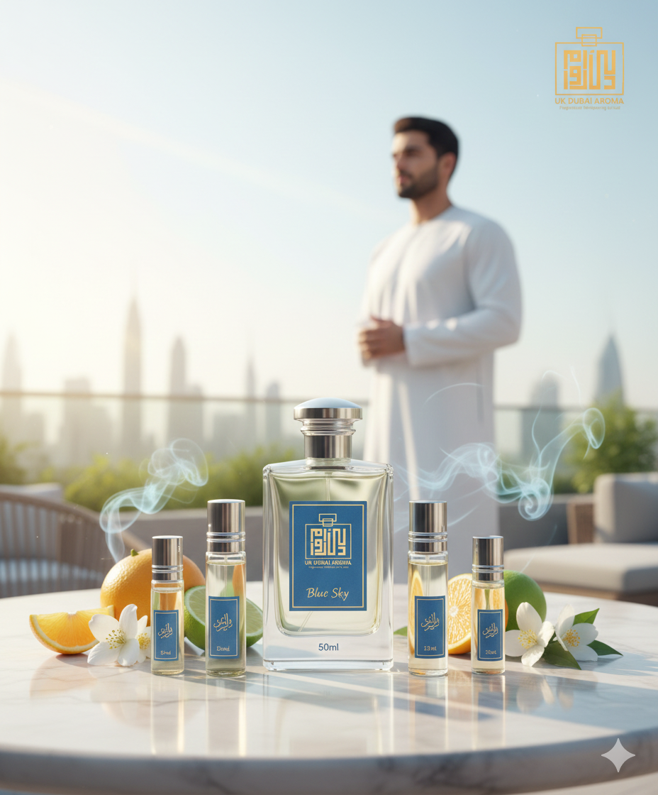 Limitless & Uplifting. Blue Sky breaks the tradition of heavy ouds by introducing a crisp, Citrus and Jasmine top layer. It is the perfect daytime attar for professional environments, offering a clean, “fresh-laundry” feel combined with a steady base of Soft Wood.